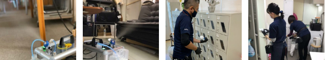 お部屋全体に機械を使って感染防御の抗菌剤を霧状にして噴射し、お部屋全体をコーティングします。