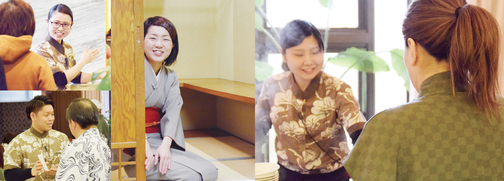 「白水館は憧れの職場。『さすが白水館』とお客様に言ってもらうには、白水館のことはもちろん、指宿のこともよく知っていなければと思い、休日を利用してあちこち足を運ぶようにしています」(仲居・中道舞氏)。